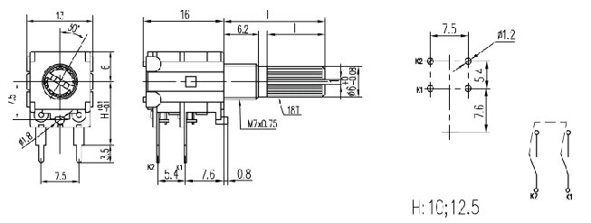 Home > Products > Classification by type > Rotary Potentiometers > 12,13mm Rotary Potentiometers with metal shaft